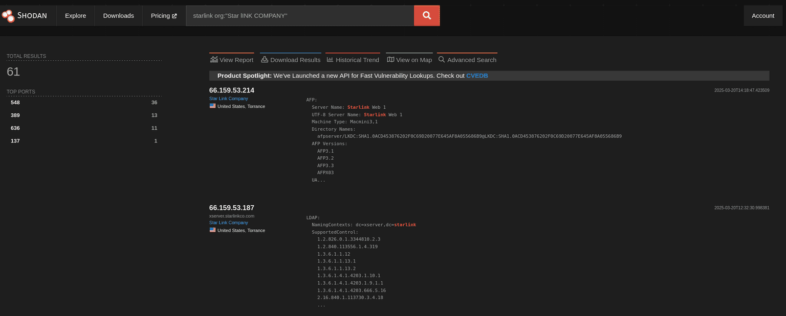 It seems that this server is indeed an important Starlink organization network node. ;)