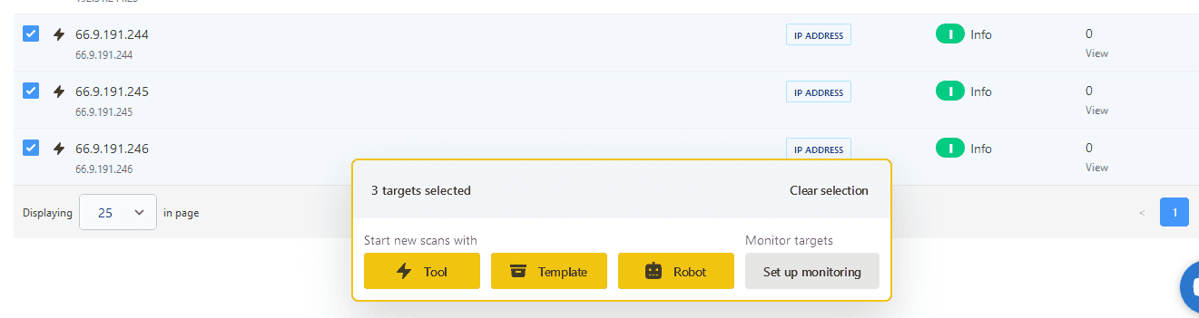 Then we’ll go back to the Target section on Pentest-Tools.com and select all those IPs.