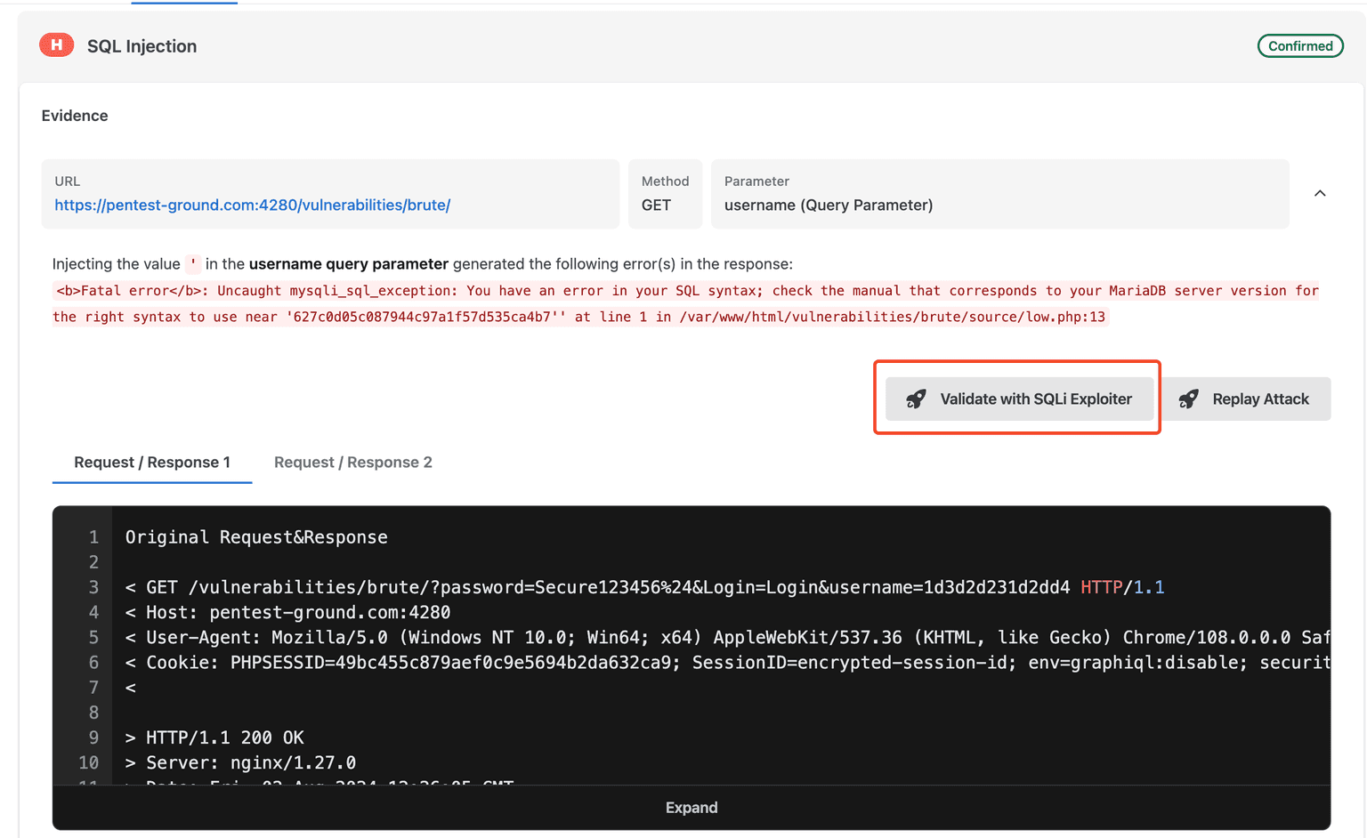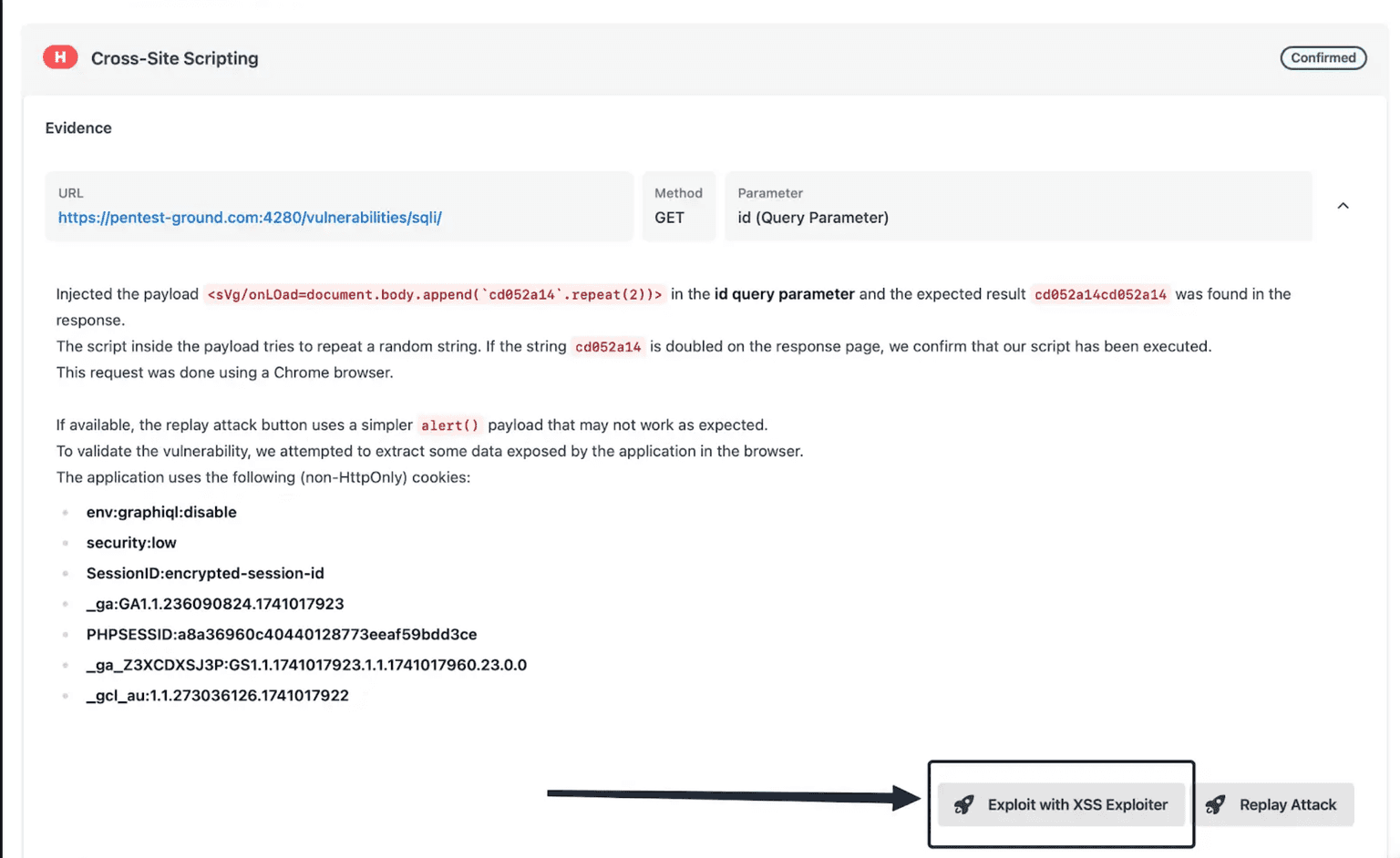 To make XSS and SQLi findings easier to navigate, we’ve also added a highlight directly in the request/response line containing the payload used in that detection.