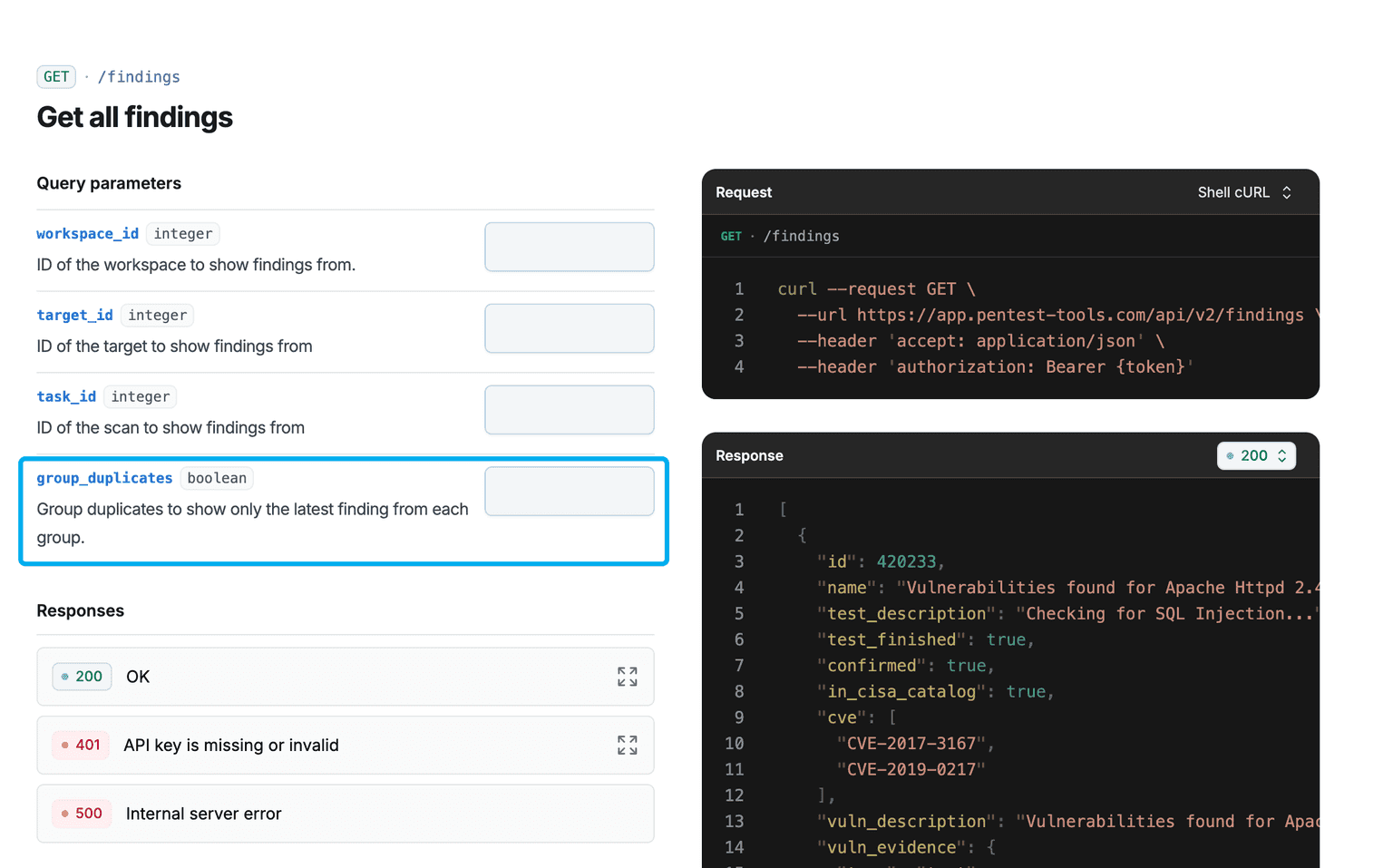 • automatically detect GraphQL as we’ve integrated our API Vulnerability Scanner’s test methods for this language